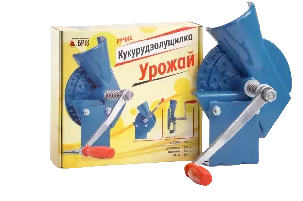 лка ручна призначена для відділення кукурудзяних зерен від кукурудзяного качана в побутових умовах. Не вибаглива в роботі, має струбцину для швидкого кріплення до столу. Не займає багато місця. Привід ручний. В комплект входить кукурузолущилка в зборі, ручка, кріпильний комплект, інструкція коробка. Матеріал кукурузолущилки сталь. Виробник Україна м. Харків.Кукурудзолущилка ручна Урожай Бриз Харків - це зручний і простий у використанні пристрій, який призначений для швидкої та легкої обробки кукурудзяних качанів. Він дає змогу швидко і легко очистити зерна кукурудзи від качанів, що робить його ідеальним вибором для домашнього використання і малих фермерських господарств.